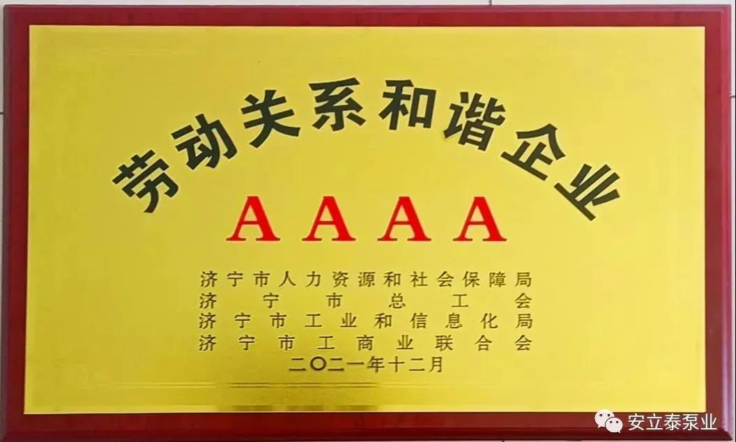 【重要信息】安泰公司榮獲“濟寧市AAAA級勞動關系和諧企業”